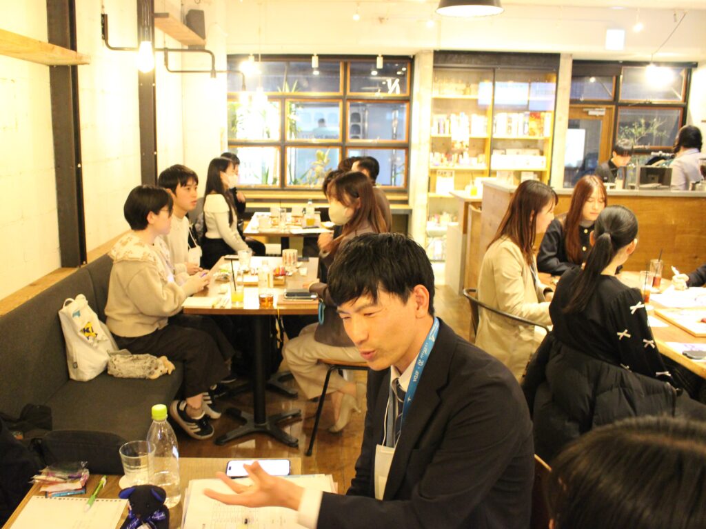 学生が気軽にキャリアや就職活動について相談できる常設カフェ。働き方のリアルを知り、自分の価値観を深めるイベントを定期開催。