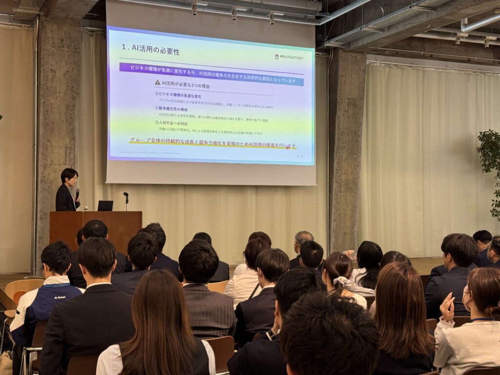 鈴与システムテクノロジー株式会社(本社:静岡市清水区、代表取締役社長:林田敏之、以下SST)は、鈴与グループ向けに開催されたオープンセミナーにおいて、AI活用を推進するための考え方や人材育成の取り組みについて紹介しました。